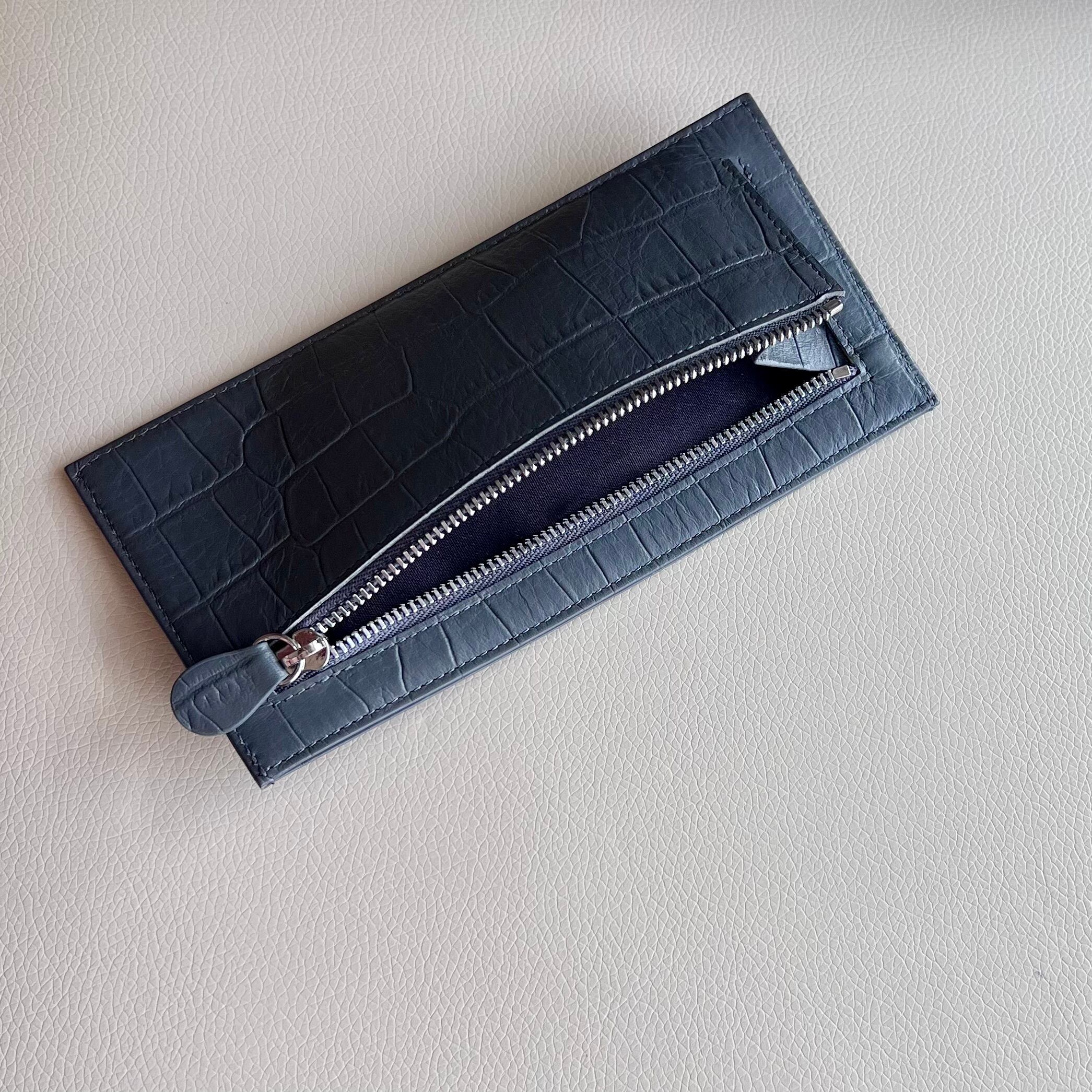 全体的にシンプル且つコンパクトな仕上がりで、流行のミニバッグに入れても場所をとらず、スーツの内側のポケットに入れても膨らみにくい。